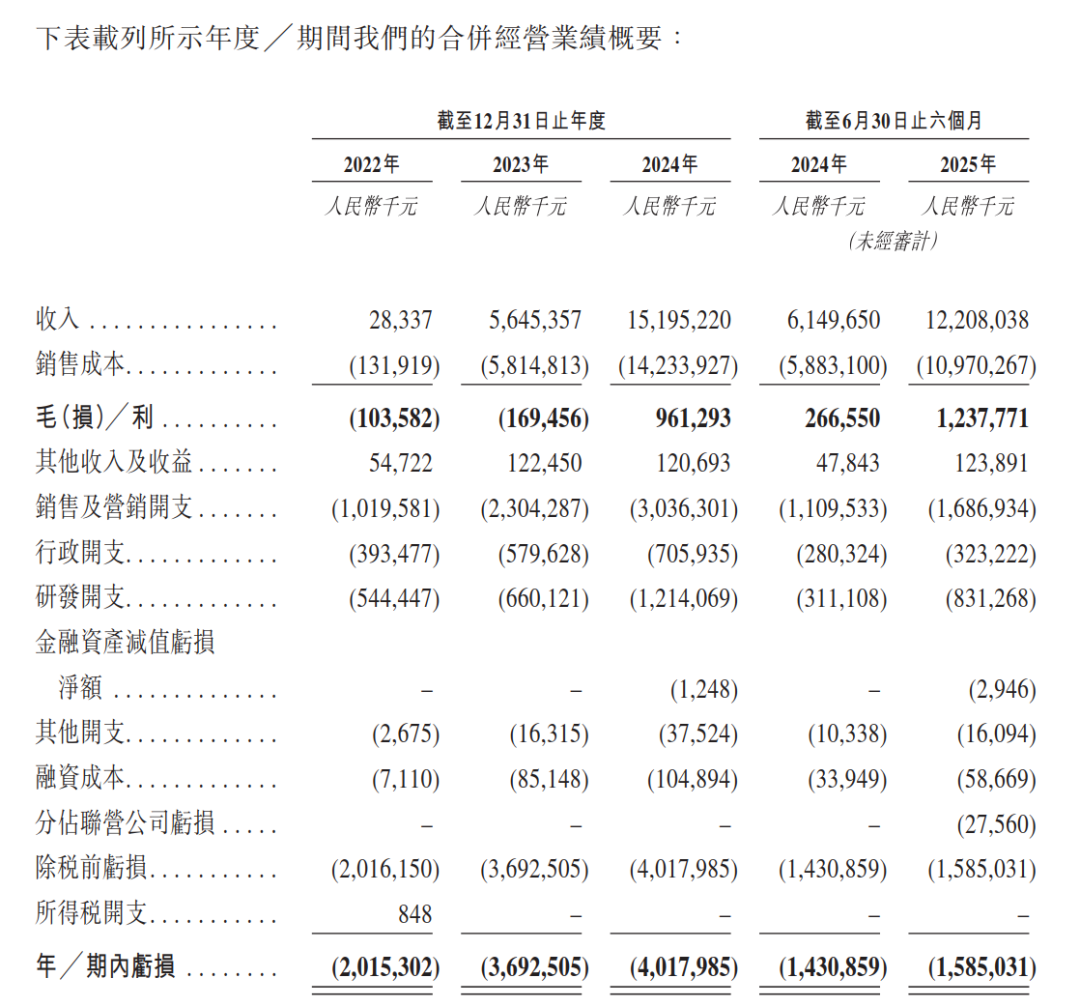 据招股书,2022-2024年,阿维塔的营收分别为2834万元、56.45亿元、151.95亿元,分别亏损20.15亿元、36.93亿元、40.18亿元。2025年前6个月,阿维塔营收122.08亿元,同比增长98.52%,亏损为15.85亿元,上年同期的期内亏损为14.31亿元。