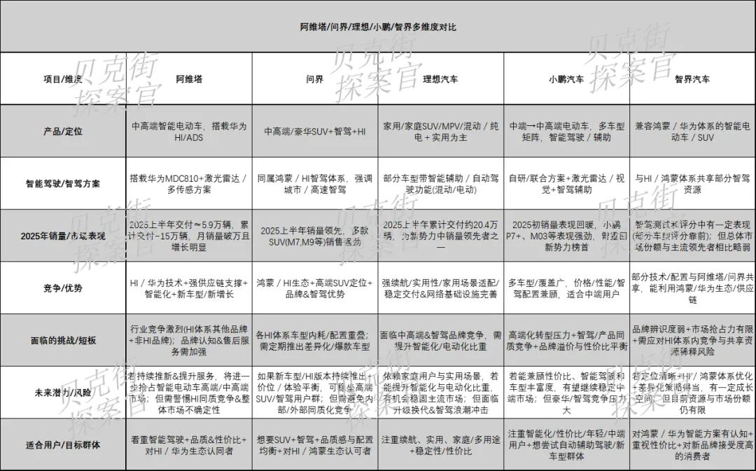 在老玩家眼中,后者明显偏向中长期稳健发展,阿维塔、问界、智界则代表了高成长高回报型,但也有回报不及预期的风险。