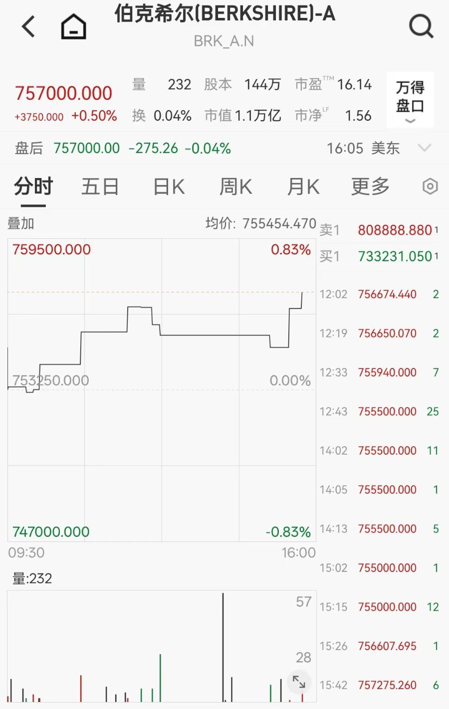2025年每股市值增长11% 1964-2025年累计增幅提升至6万倍